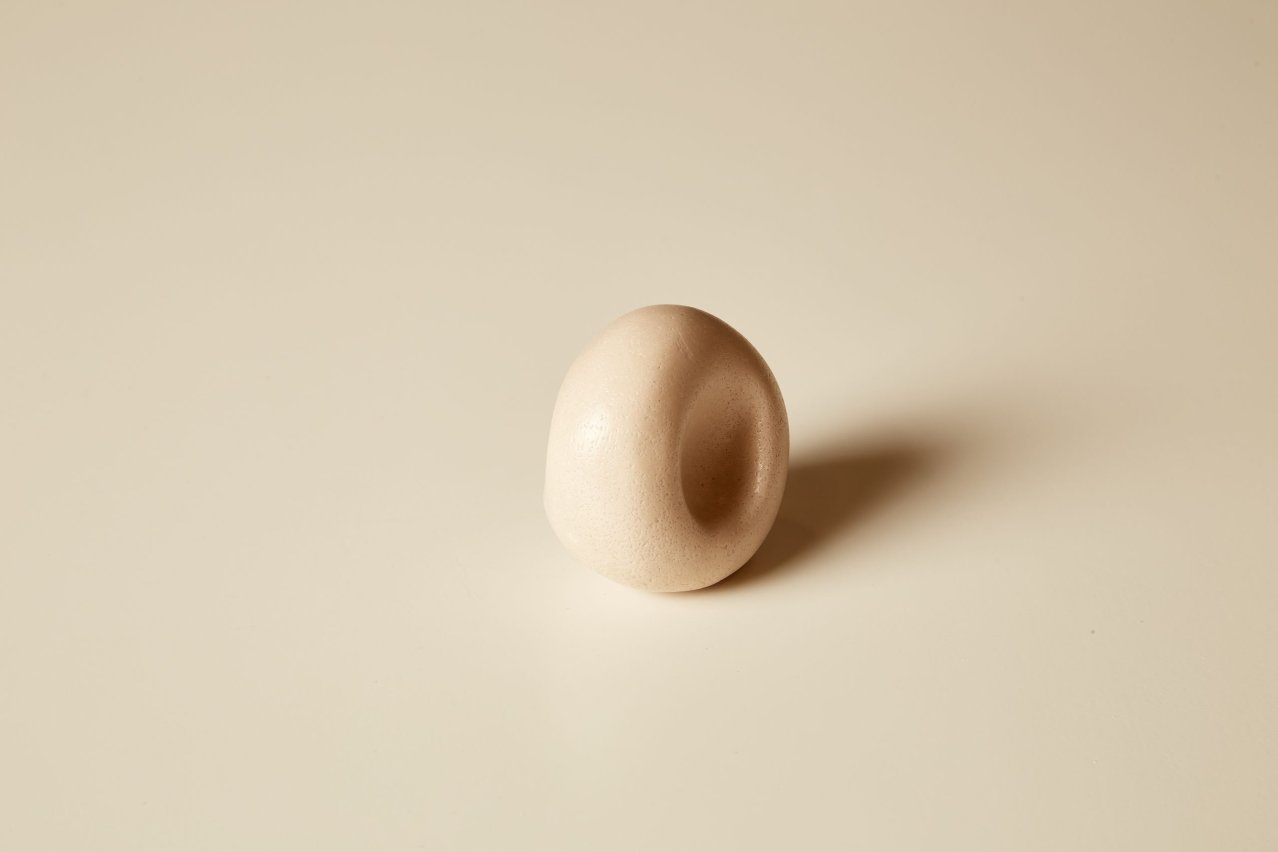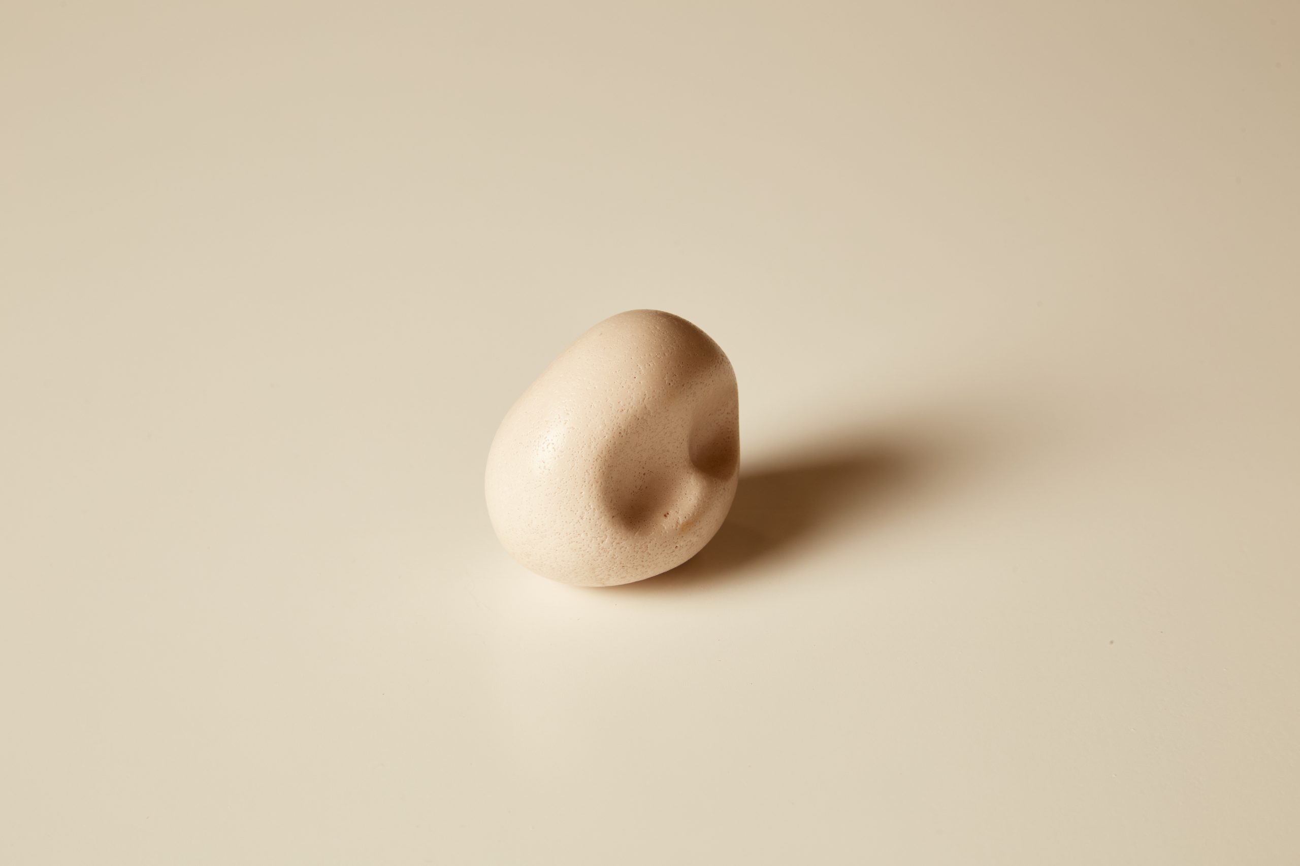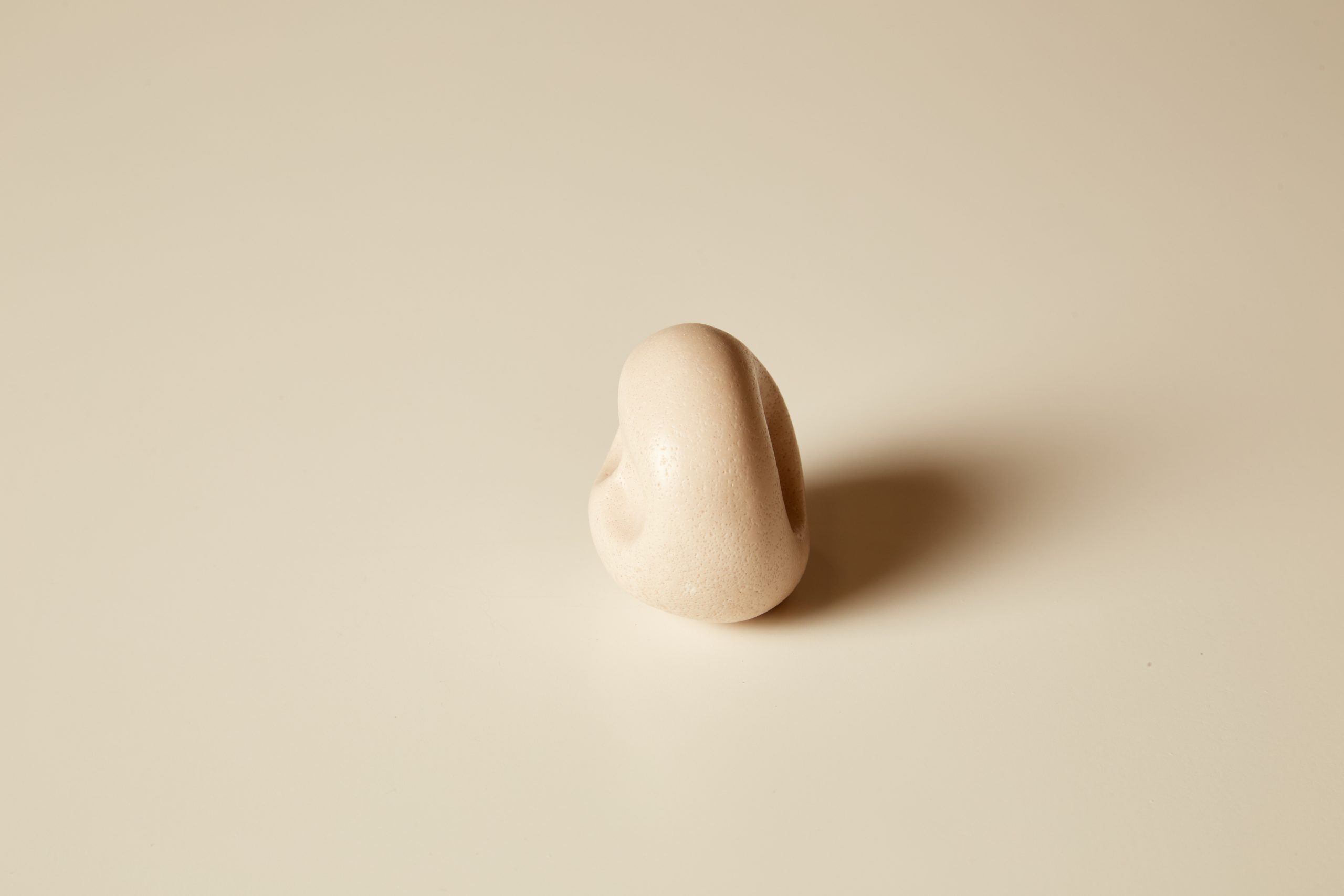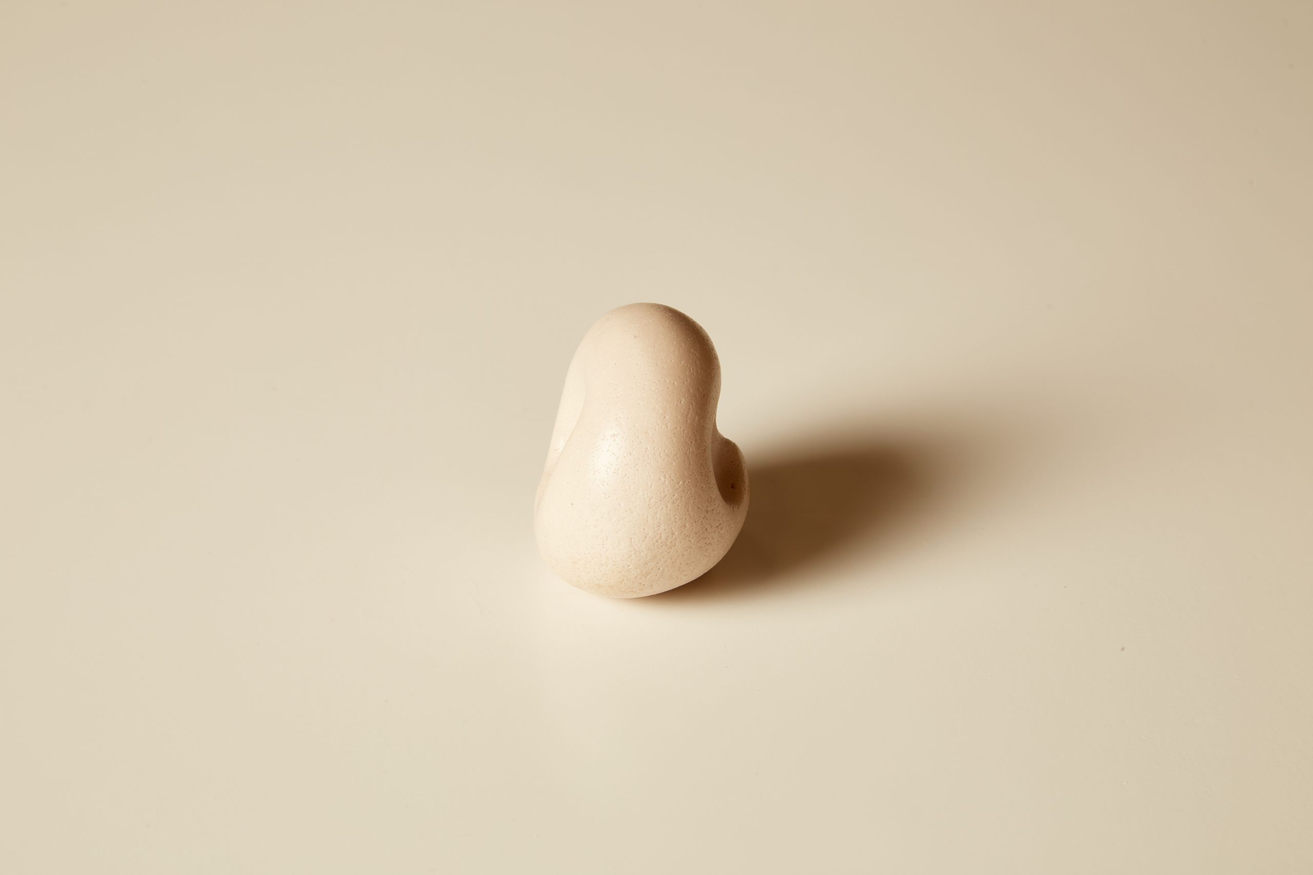 A knob formed from a three finger pinch. Cast from stone composite using earth based binders.